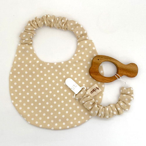 布で作った『もこもこホルダー』です。布で作っているので、赤ちゃんのよだれがついても、洗って干すだけの簡単お手入れができる商品です。